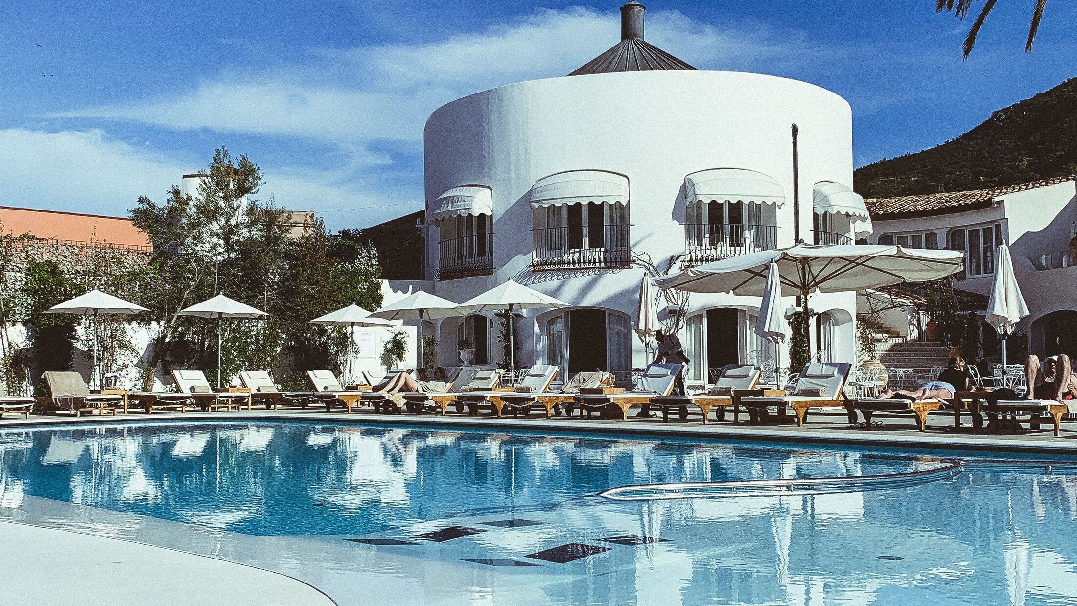 Les chambres et suites, réparties entre différents niveaux et pavillons, offrent une vue imprenable sur la mer ou les jardins. Certaines chambres disposent de jacuzzis extérieurs ou de petites piscines privées, prolongeant l’expérience sensorielle jusque dans l’intimité. Le design intérieur, élégant mais sans ostentation, privilégie la lumière naturelle et les matières nobles. Les tons sont doux — blanc, sable, bleu marine — et rappellent les couleurs de la côte.